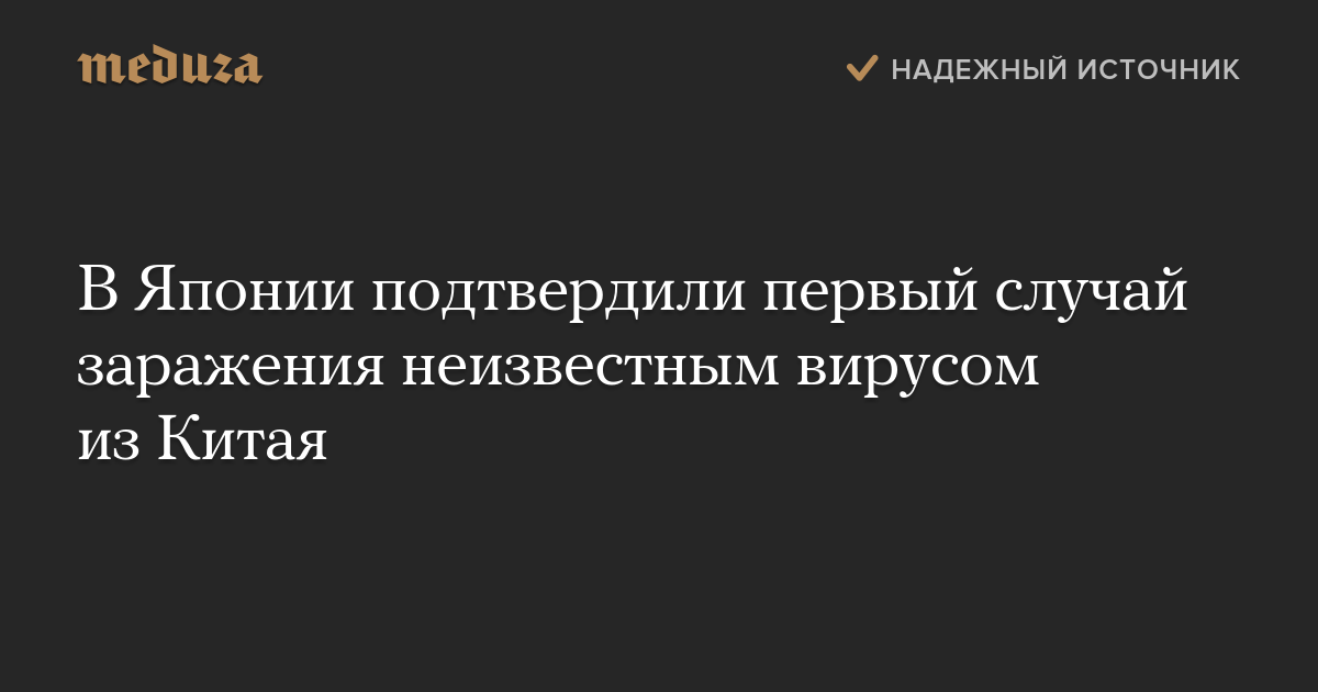 30-летний уроженец Китая, проживающий в Японии, заразился неизвестным вирусом после того, как посетил китайский город Ухань, где в декабре произошла вспышка пневмонии, вызванная новым коронавирусом.