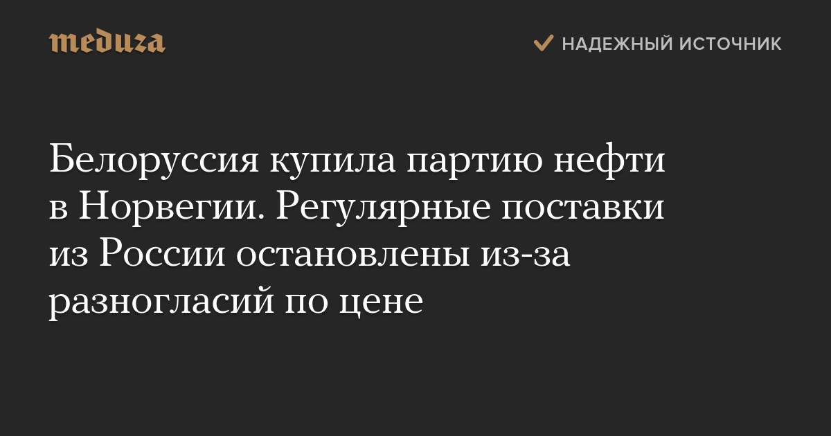 Белоруссия купила партию нефти в Норвегии. Регулярные поставки из России остановлены из-за разногласий по цене