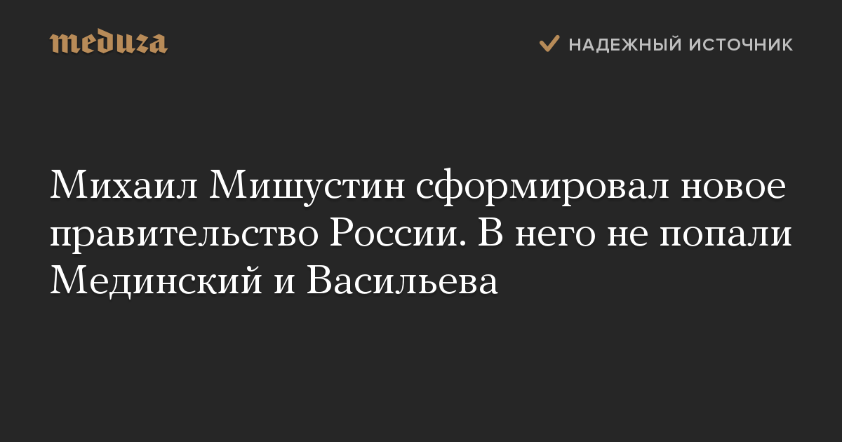 Михаил Мишустин сформировал новое правительство России. В него не попали Мединский и Васильева