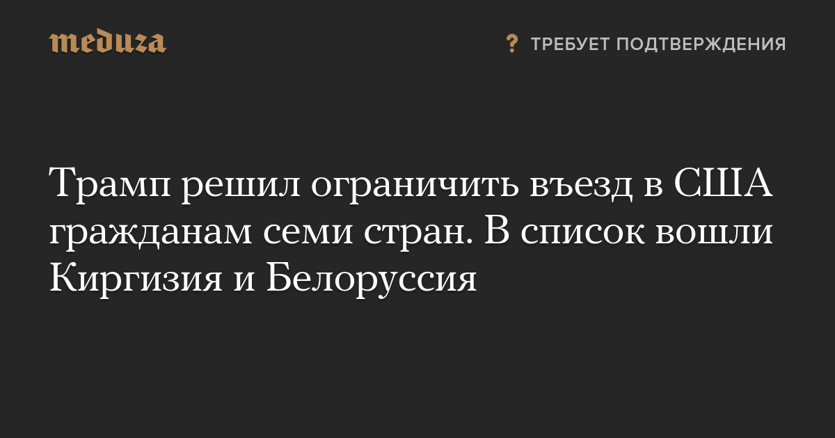 Трамп решил ограничить въезд в США гражданам семи стран. В список вошли Киргизия и Белоруссия