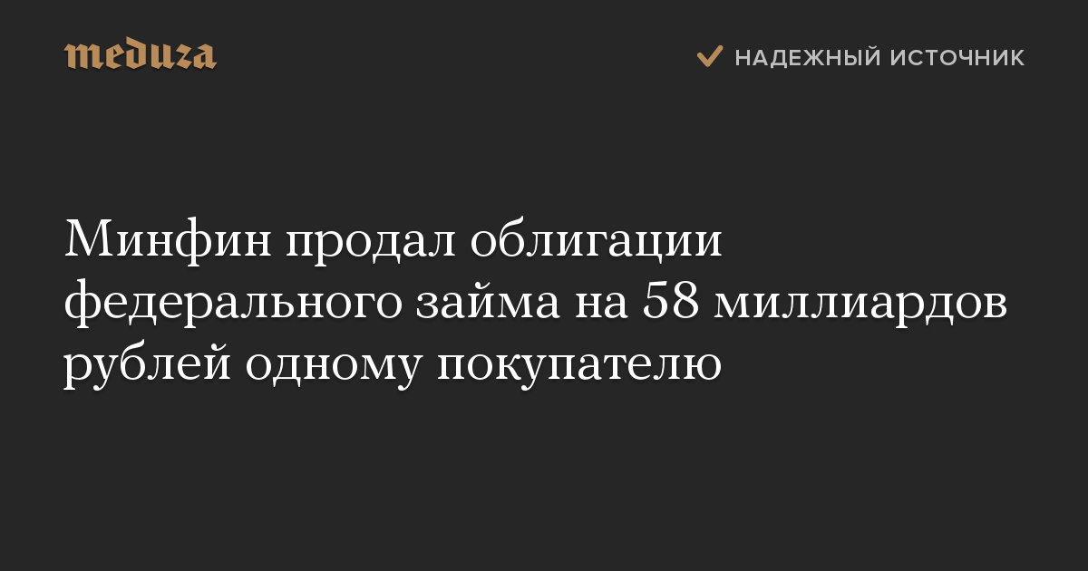 Минфин продал облигации федерального займа на 58 миллиардов рублей одному покупателю