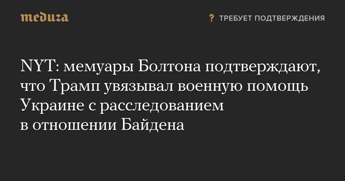 NYT: мемуары Болтона подтверждают, что Трамп увязывал военную помощь Украине с расследованием в отношении Байдена
