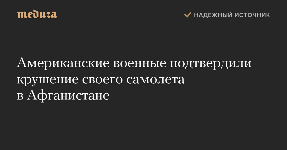 Американские военные подтвердили крушение своего самолета в Афганистане