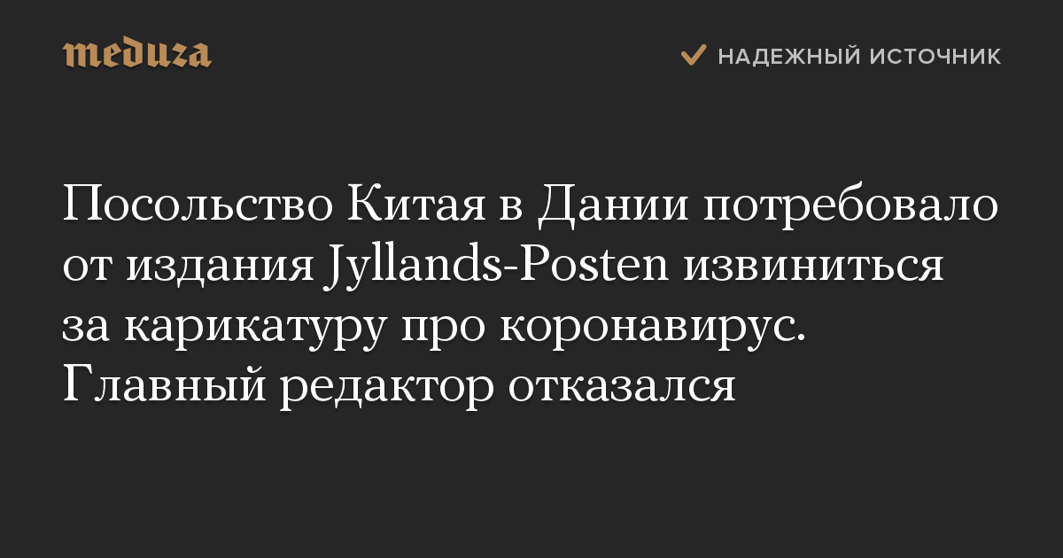 Посольство Китая в Дании потребовало от издания Jyllands-Posten извиниться за карикатуру про коронавирус. Главный редактор отказался