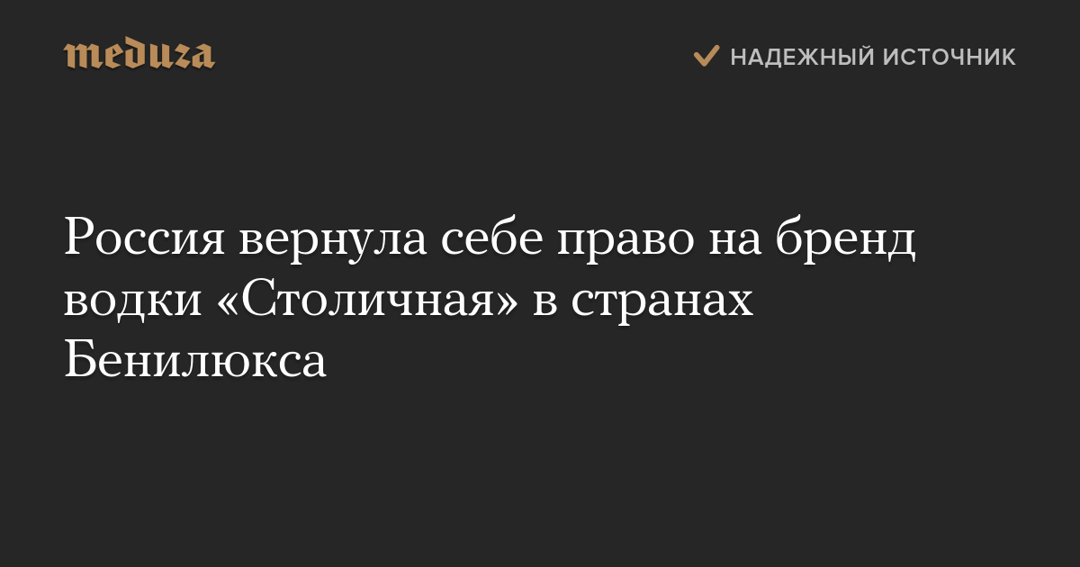 Россия вернула себе право на бренд водки «Столичная» в странах Бенилюкса