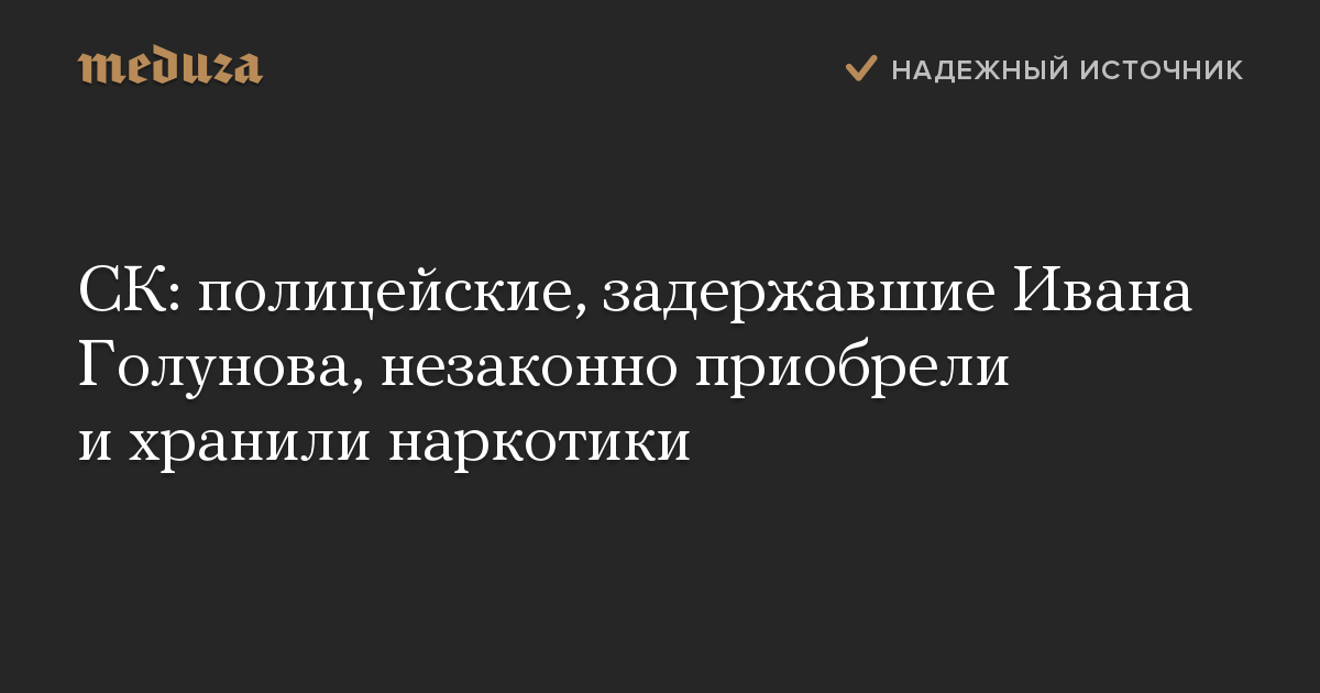 СК: полицейские, задержавшие Ивана Голунова, незаконно приобрели и хранили наркотики
