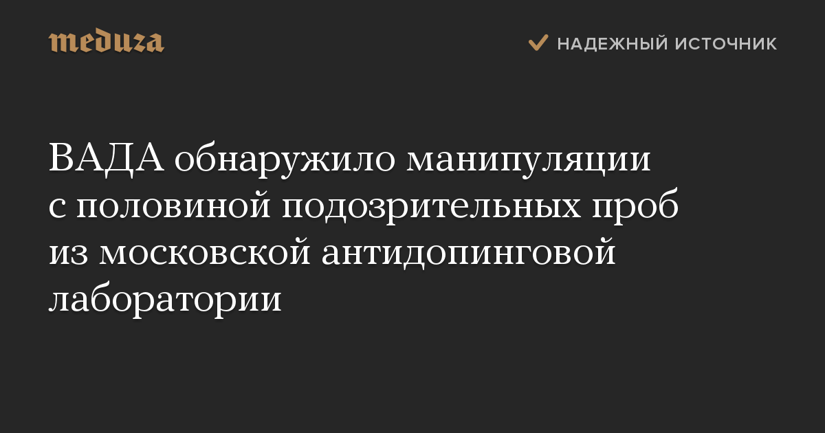 ВАДА обнаружило манипуляции с половиной подозрительных проб из московской антидопинговой лаборатории