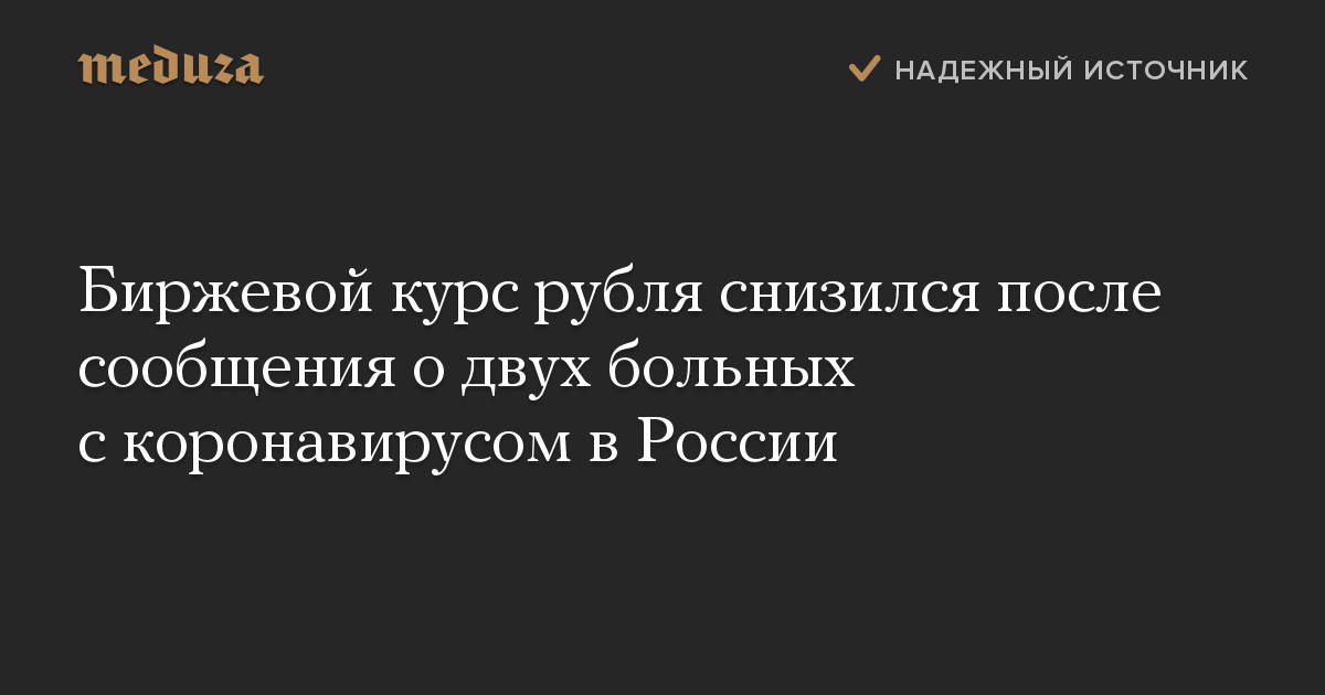 Курс рубля на торгах на Московской бирже снизился после того, как было официально объявлено о двух больных с коронавирусом в России.