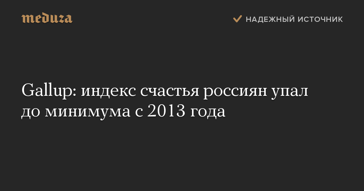 Gallup: индекс счастья россиян упал до минимума с 2013 года