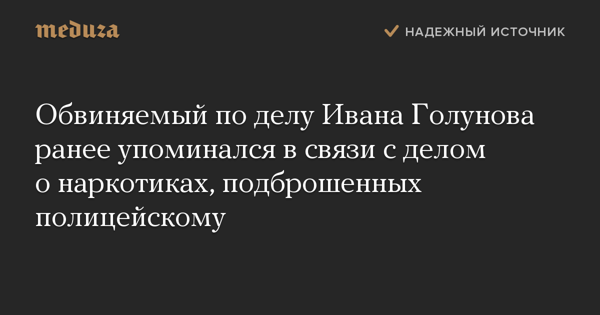 Обвиняемый по делу Ивана Голунова ранее упоминался в связи с делом о наркотиках, подброшенных полицейскому