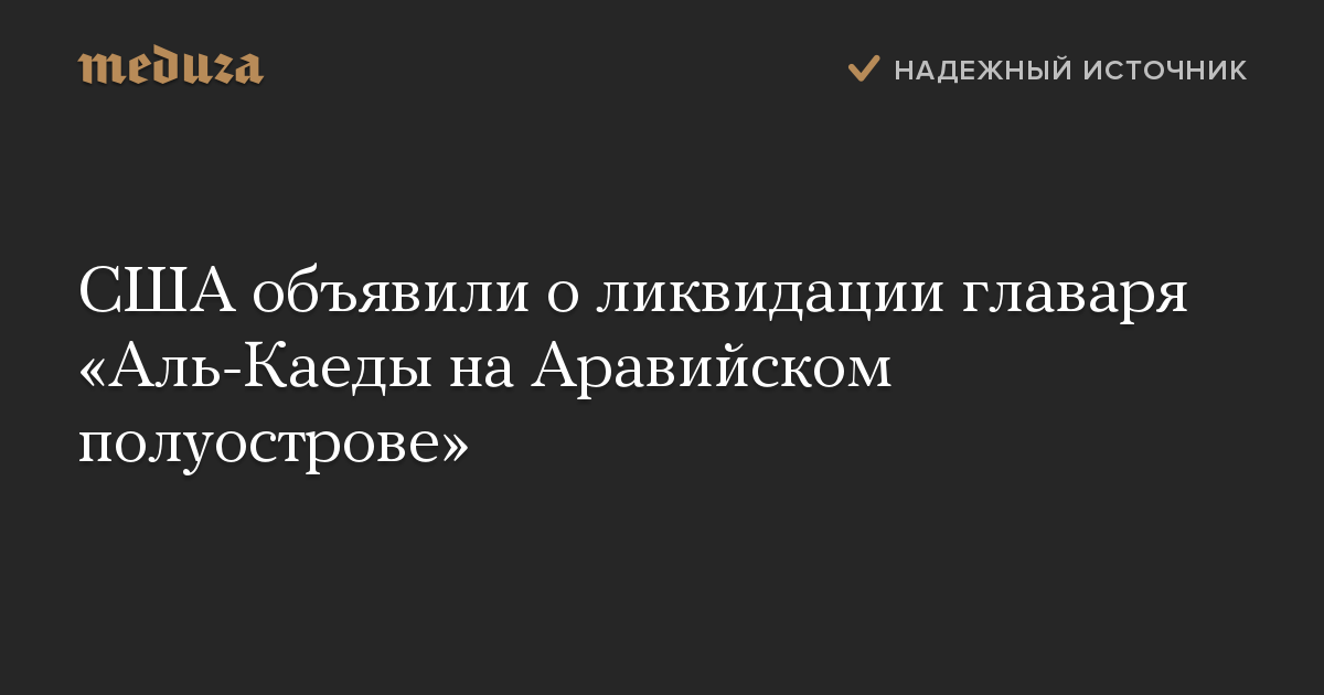 США объявили о ликвидации главаря «Аль-Каеды на Аравийском полуострове»