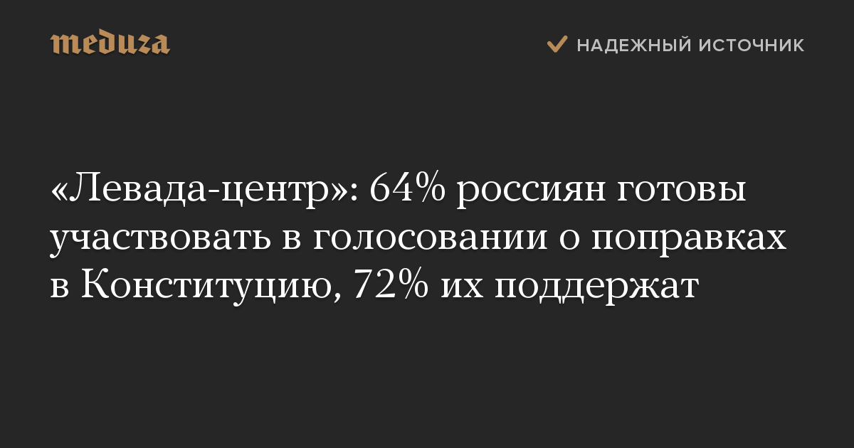«Левада-центр»: 64% россиян готовы участвовать в голосовании о поправках в Конституцию, 72% их поддержат