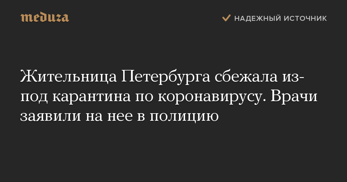 Жительница Петербурга сбежала из-под карантина по коронавирусу. Врачи заявили на нее в полицию