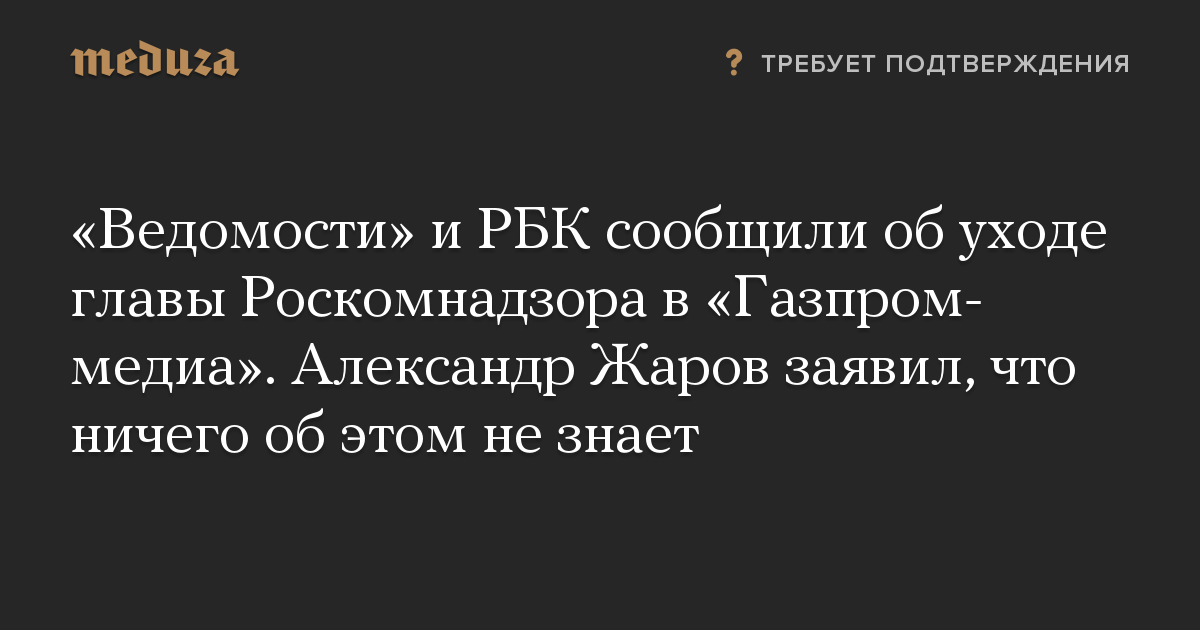 «Ведомости» и РБК сообщили об уходе главы Роскомнадзора в «Газпром-медиа». Александр Жаров заявил, что ничего об этом не знает