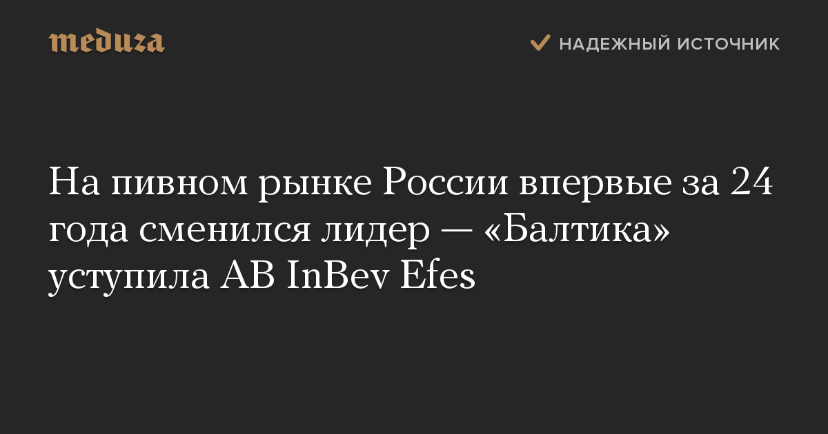 На пивном рынке России впервые за 24 года сменился лидер — «Балтика» уступила AB InBev Efes