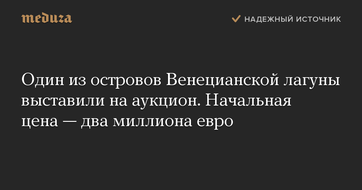 Один из островов Венецианской лагуны выставили на аукцион. Начальная цена — два миллиона евро