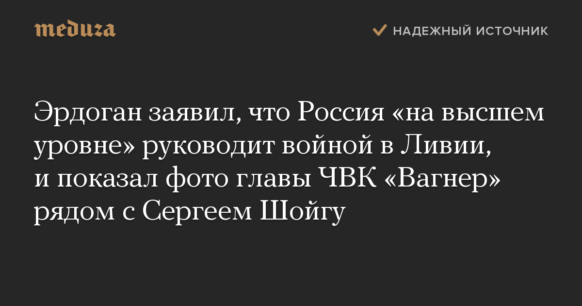 Эрдоган заявил, что Россия «на высшем уровне» руководит войной в Ливии, и показал фото главы ЧВК «Вагнер» рядом с Сергеем Шойгу