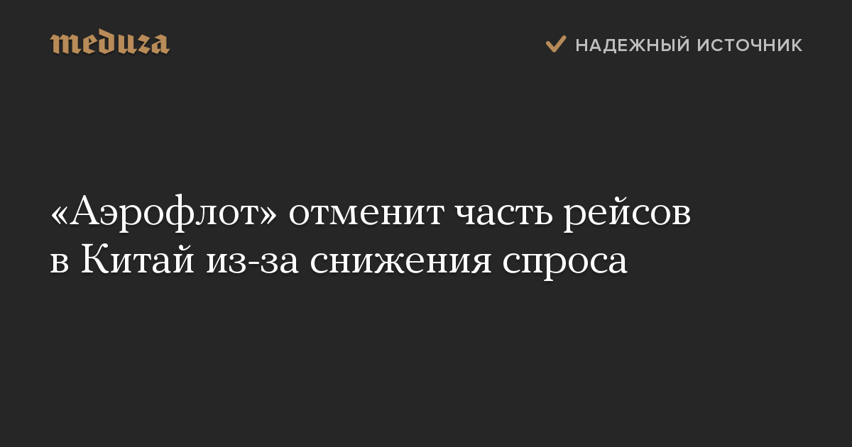 «Аэрофлот» отменит часть рейсов в Китай из-за снижения спроса