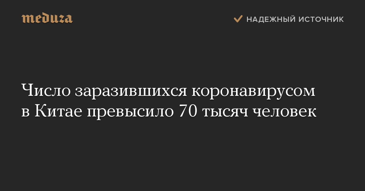 Число заразившихся коронавирусом в Китае превысило 70 тысяч человек