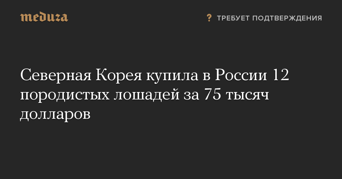 Октябрьская покупка породистых лошадей — не первая, добавляет издание. В августе 2016-го КНДР купила в России двух животных общей стоимостью 5,6 тысячи долларов.