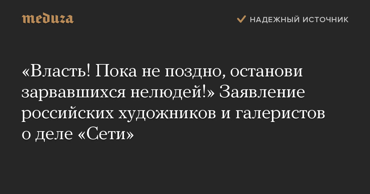 «Власть! Пока не поздно, останови зарвавшихся нелюдей!» Заявление российских художников и галеристов о деле «Сети»