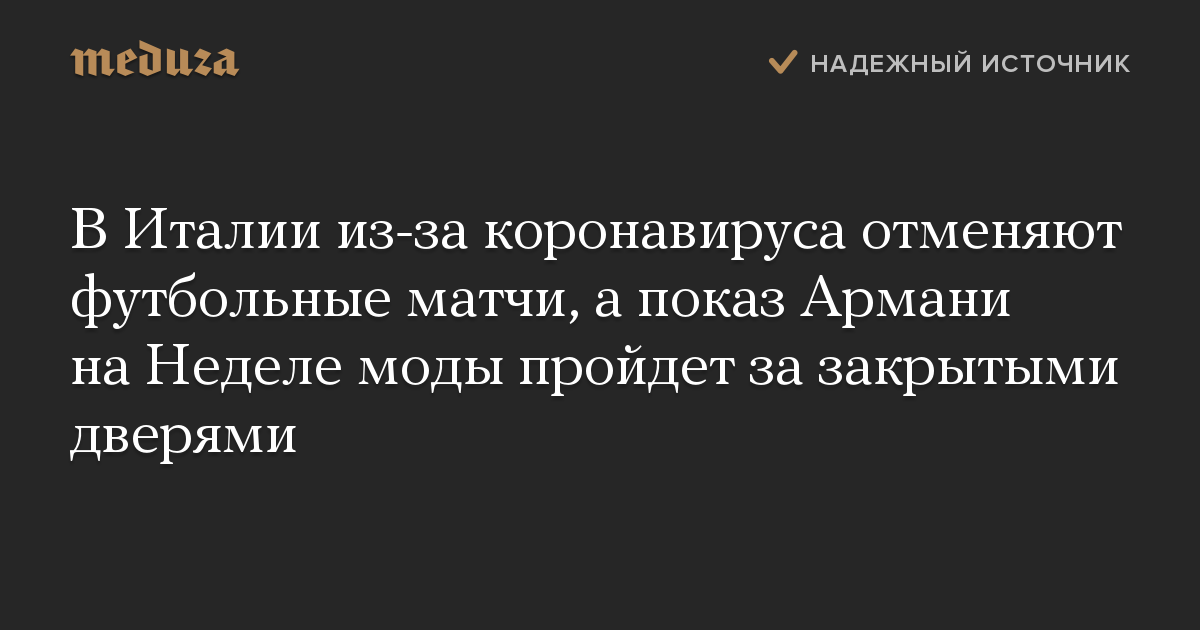 В Италии из-за коронавируса отменяют футбольные матчи, а показ Армани на Неделе моды пройдет за закрытыми дверями