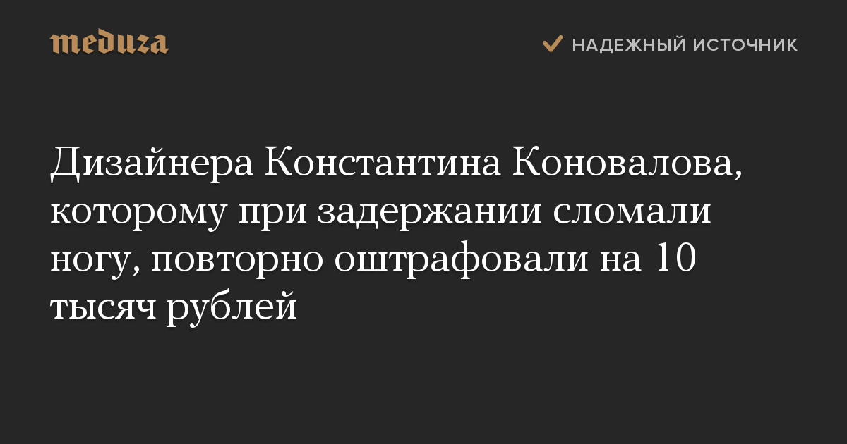 Дизайнера Константина Коновалова, которому при задержании сломали ногу, повторно оштрафовали на 10 тысяч рублей