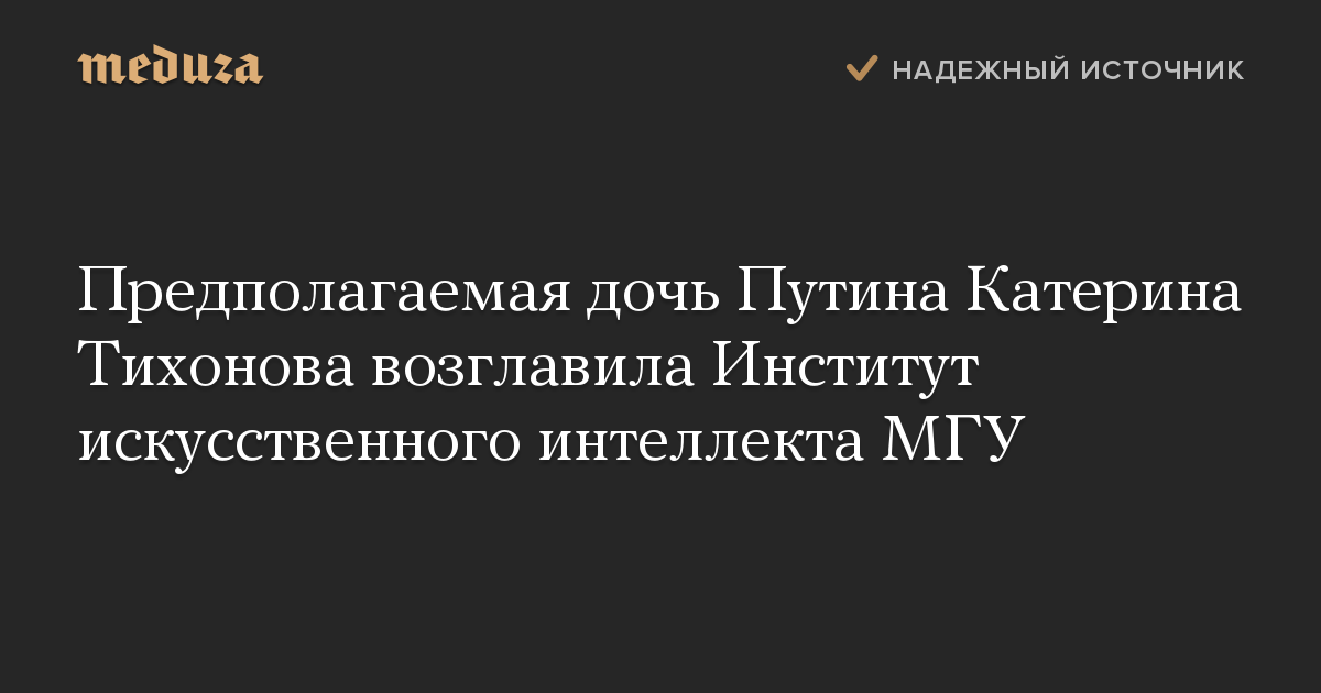 Предполагаемая дочь Владимира Путина, глава фонда «Иннопрактика» Катерина Тихонова возглавила Институт перспективных исследований проблем искусственного интеллекта (ИИ) и интеллектуальных систем МГУ. Об этом «Ведомостям» рассказали в фонде «Иннопрактика».