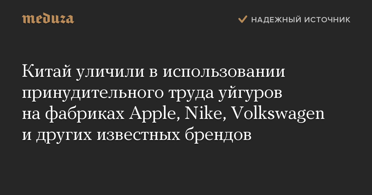 Китай уличили в использовании принудительного труда уйгуров на фабриках Apple, Nike, Volkswagen и других известных брендов