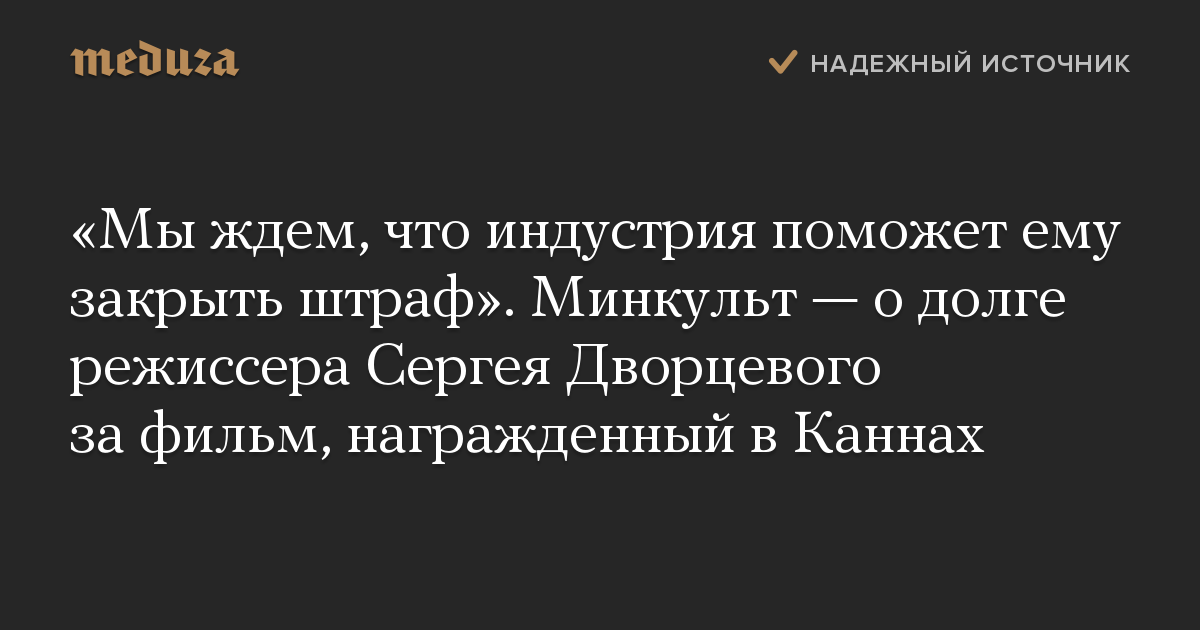 «Мы ждем, что индустрия поможет ему закрыть штраф». Минкульт — о долге режиссера Сергея Дворцевого за фильм, награжденный в Каннах