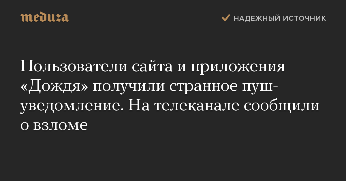 Пользователи сайта и приложения «Дождя» получили странное пуш-уведомление. На телеканале сообщили о взломе