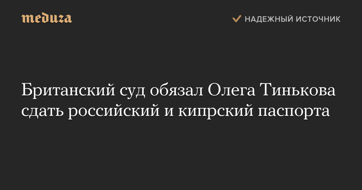 Британский суд обязал Олега Тинькова сдать российский и кипрский паспорта