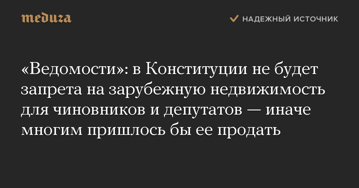 «Ведомости»: в Конституции не будет запрета на зарубежную недвижимость для чиновников и депутатов — иначе многим пришлось бы ее продать