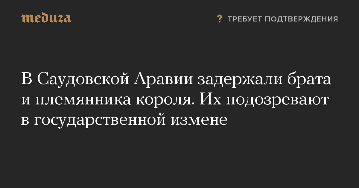 В Саудовской Аравии брат и племянник короля Салмана бин Абдул-Азиза Аль Сауда задержаны по подозрению в государственной измене. Об этом сообщает The Wall Street Journal со ссылкой на источники, знакомые с ситуацией.