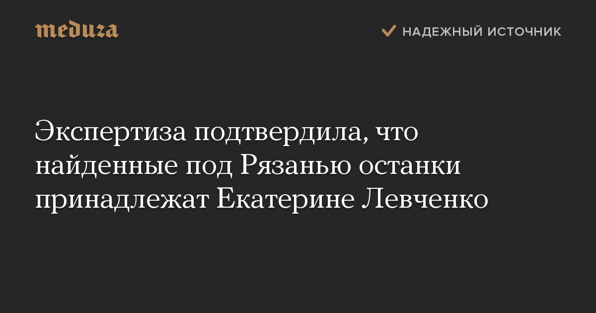 Обновление. Итоги экспертизы официально подтвердил Следственный комитет. «По предварительным данным, после проведенной генетической экспертизы, останки, найденные в Рязанской области, принадлежат Екатерине Левченко», — сообщили «Интерфаксу» в пресс-службе управления СК по Пензенской области.
