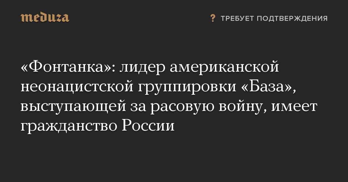«Фонтанка»: лидер американской неонацистской группировки «База», выступающей за расовую войну, имеет гражданство России