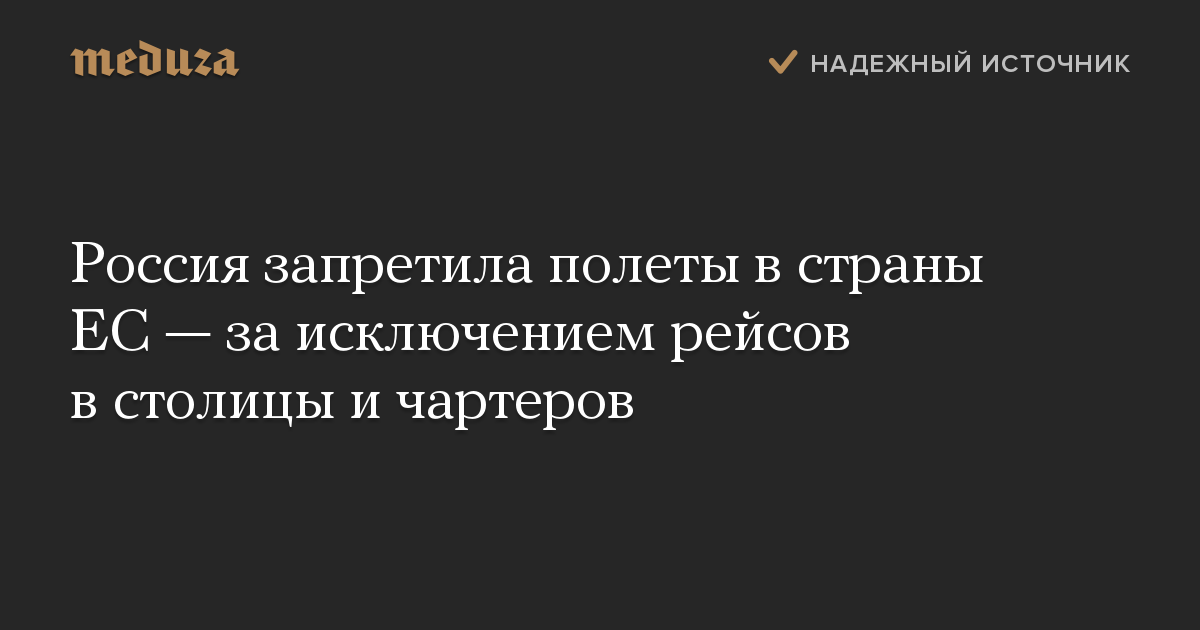 Россия запретила полеты в страны ЕС — за исключением рейсов в столицы и чартеров