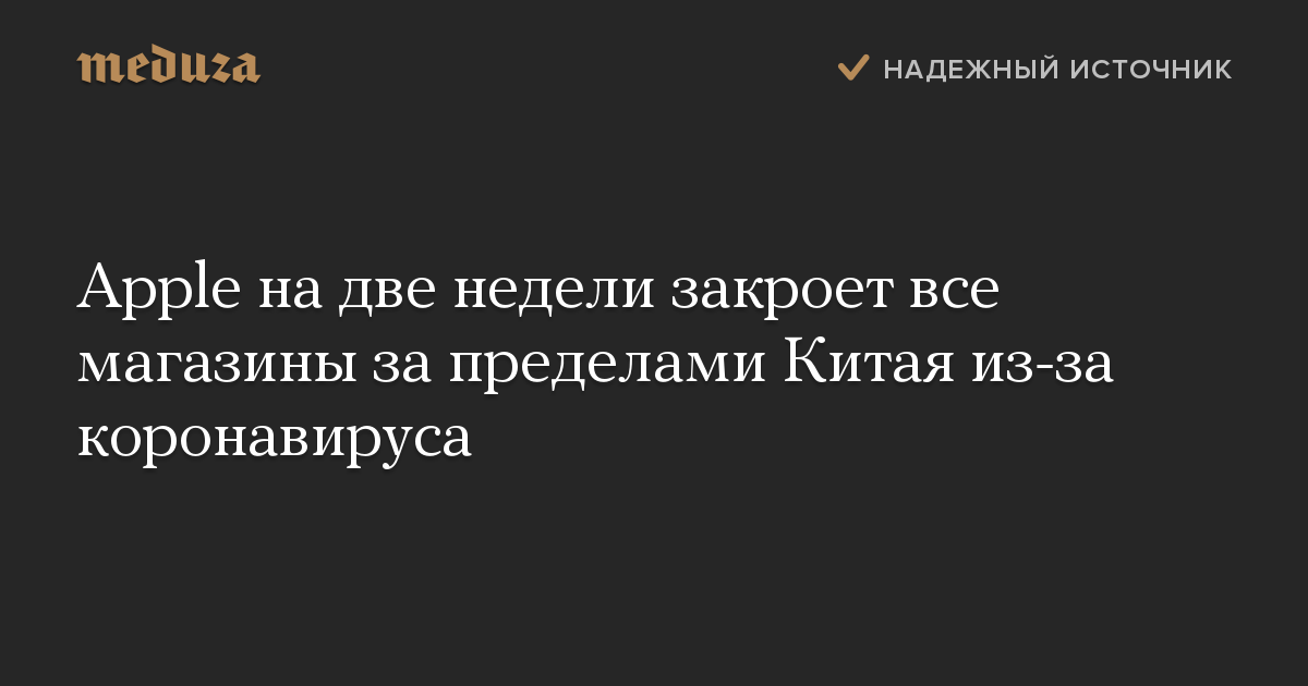 Apple на две недели закроет все магазины за пределами Китая из-за коронавируса