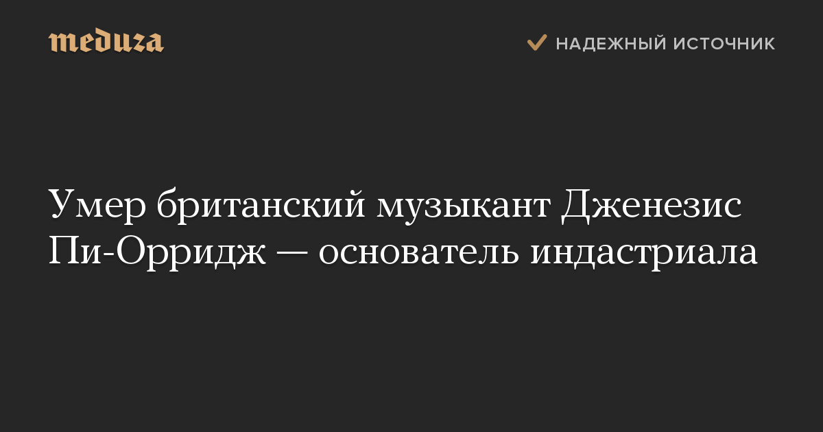 Умер британский музыкант Дженезис Пи-Орридж — основатель индастриала