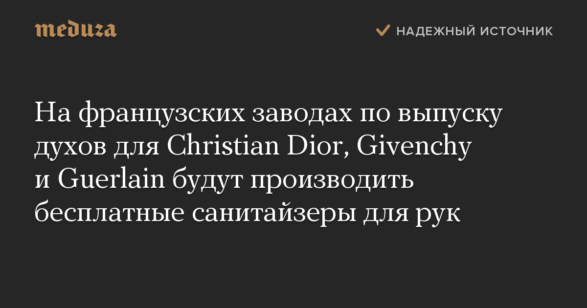 На французских заводах по выпуску духов для Christian Dior, Givenchy и Guerlain будут производить бесплатные санитайзеры для рук