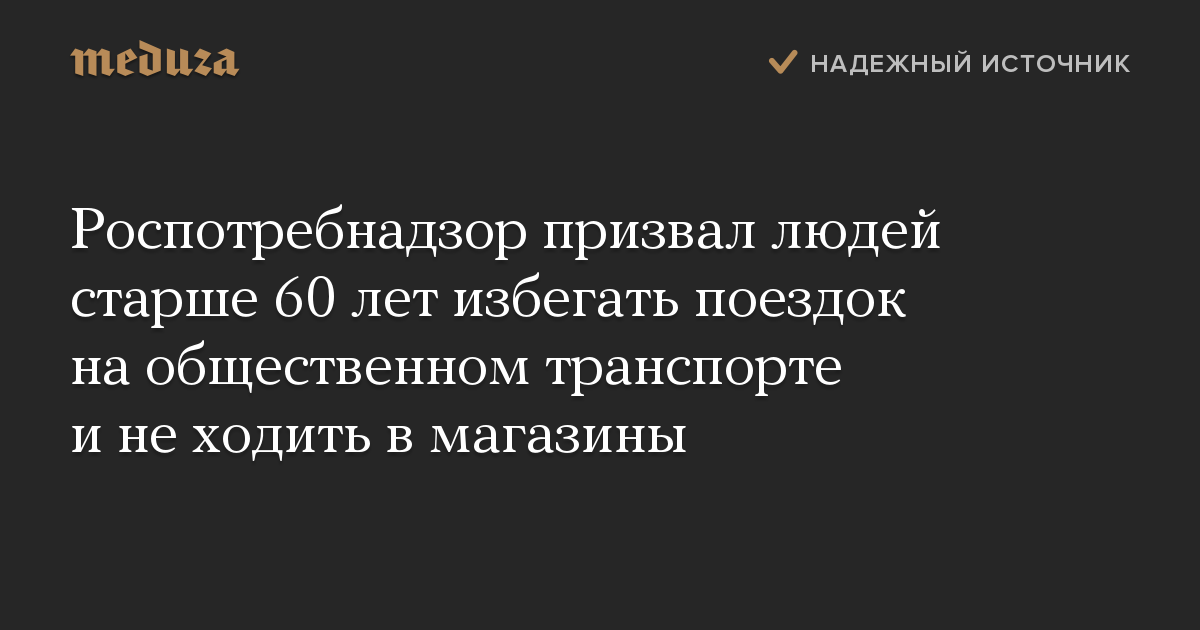 Роспотребнадзор призвал людей старше 60 лет избегать поездок на общественном транспорте и не ходить в магазины