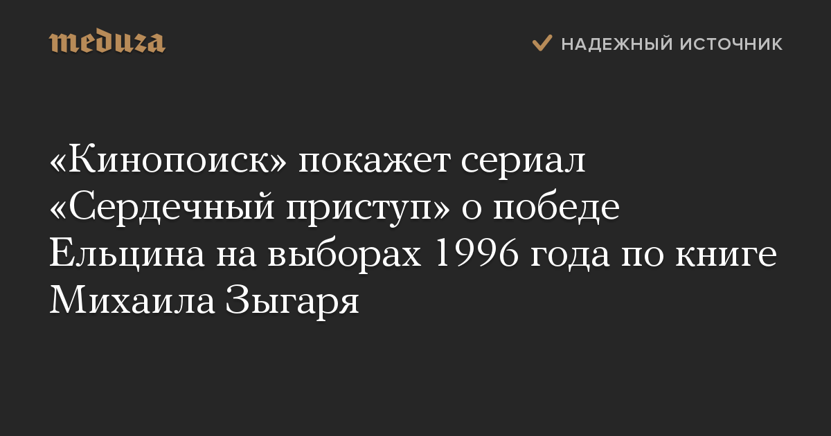 «Кинопоиск» покажет сериал «Сердечный приступ» о победе Ельцина на выборах 1996 года по книге Михаила Зыгаря