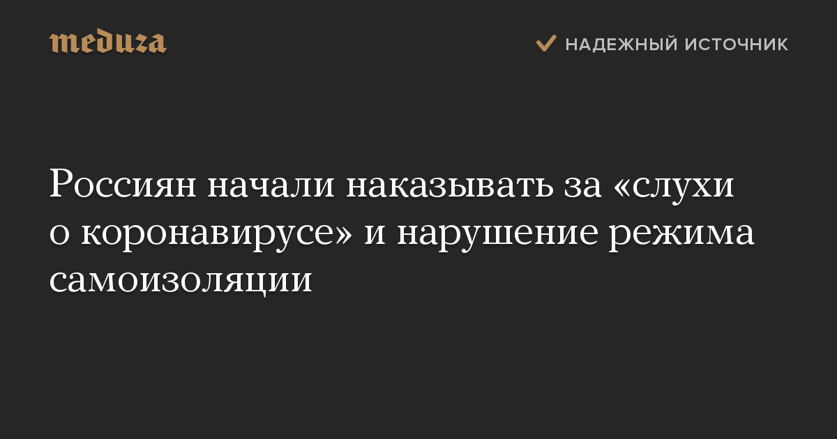 Россиян начали наказывать за «слухи о коронавирусе» и нарушение режима самоизоляции