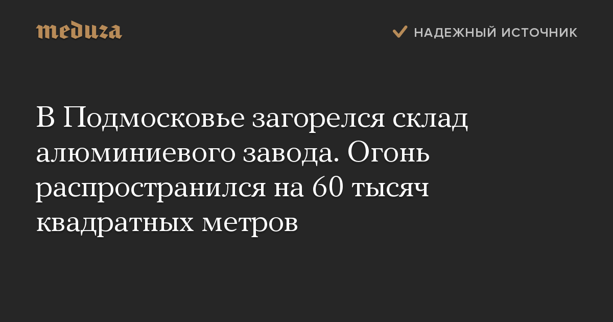 В Подмосковье загорелся склад алюминиевого завода. Огонь распространился на 60 тысяч квадратных метров