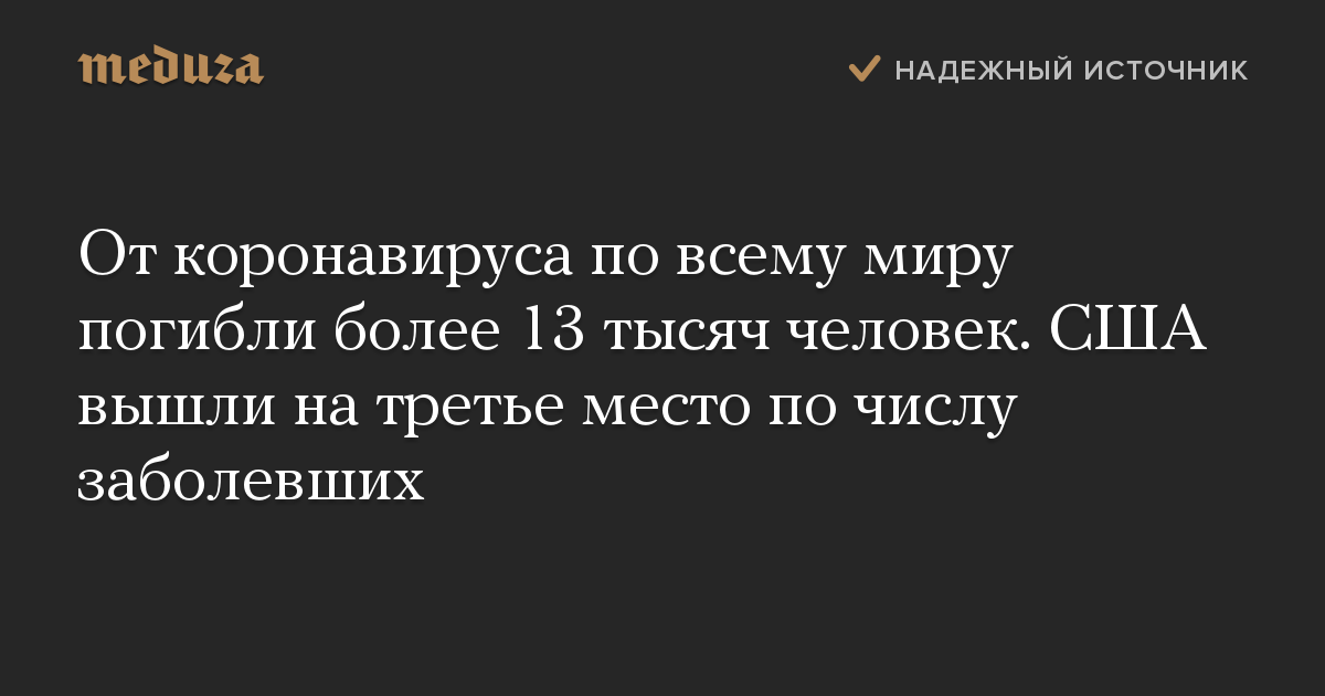 От коронавируса по всему миру погибли более 13 тысяч человек. США вышли на третье место по числу заболевших