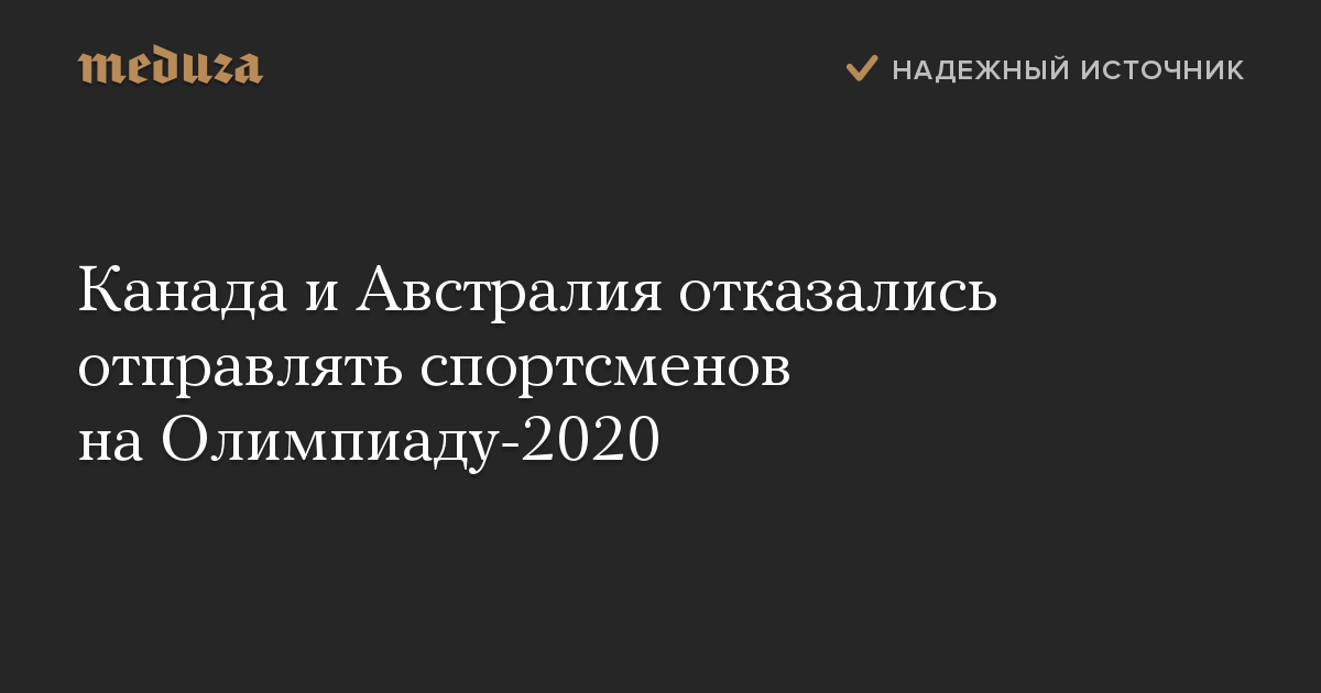 Канада и Австралия отказались отправлять спортсменов на Олимпиаду-2020