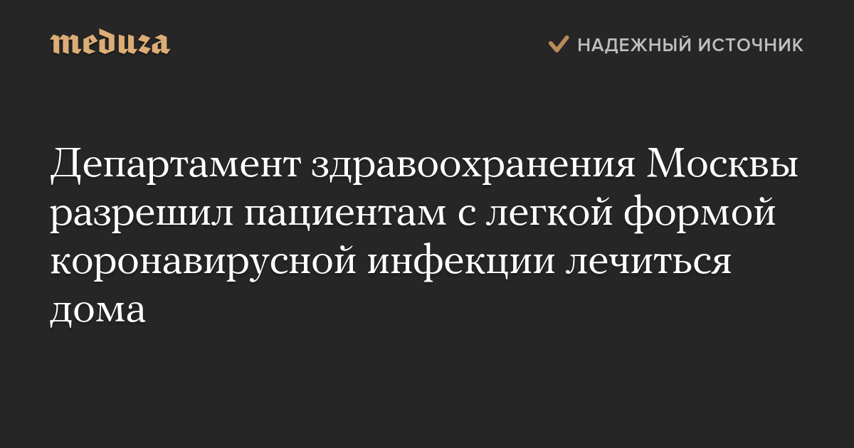 Департамент здравоохранения Москвы разрешил пациентам с легкой формой коронавирусной инфекции лечиться дома