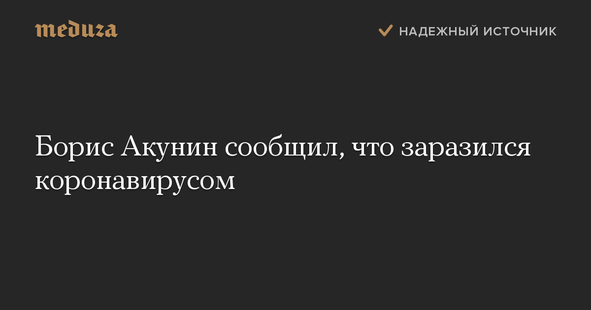 Писатель Борис Акунин сообщил в фейсбуке, что у него обнаружили коронавирус.