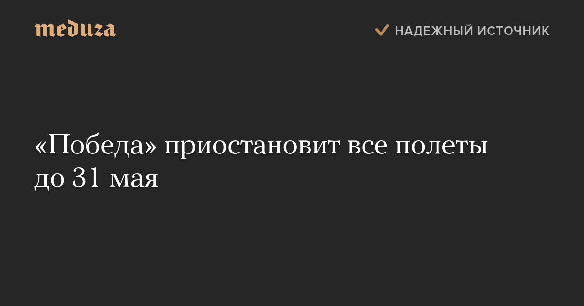 Обновление. В «Победе» сообщили, что приостановят все полеты с 1 апреля до 31 мая в рамках реализации мер властей России по борьбе с распространением коронавируса.