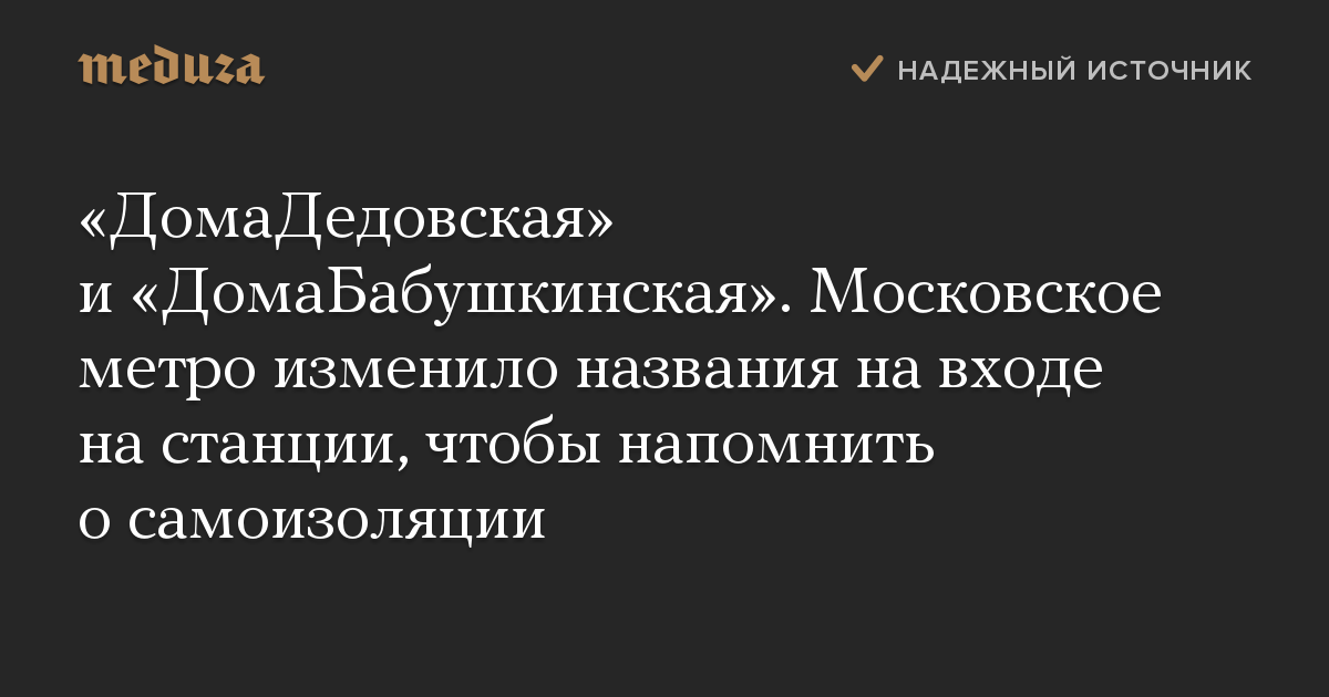 «ДомаДедовская» и «ДомаБабушкинская». Московское метро изменило названия на входе на станции, чтобы напомнить о самоизоляции